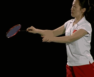 正手发后场高远球时,击球点靠近左脚位置,造成甩上臂“屈腕”发力击球