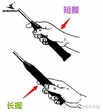 考虑到各个位置的技术特点(网前要细腻,后场要狂野),所以网前要短握,后场要长握。