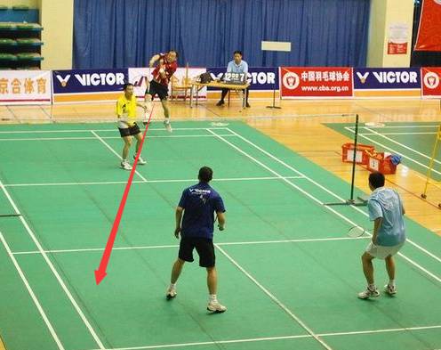 对手起高球,我方就该转入进攻。虽然进攻并不意味着要杀球,但一定要把进攻的站位打出来。
